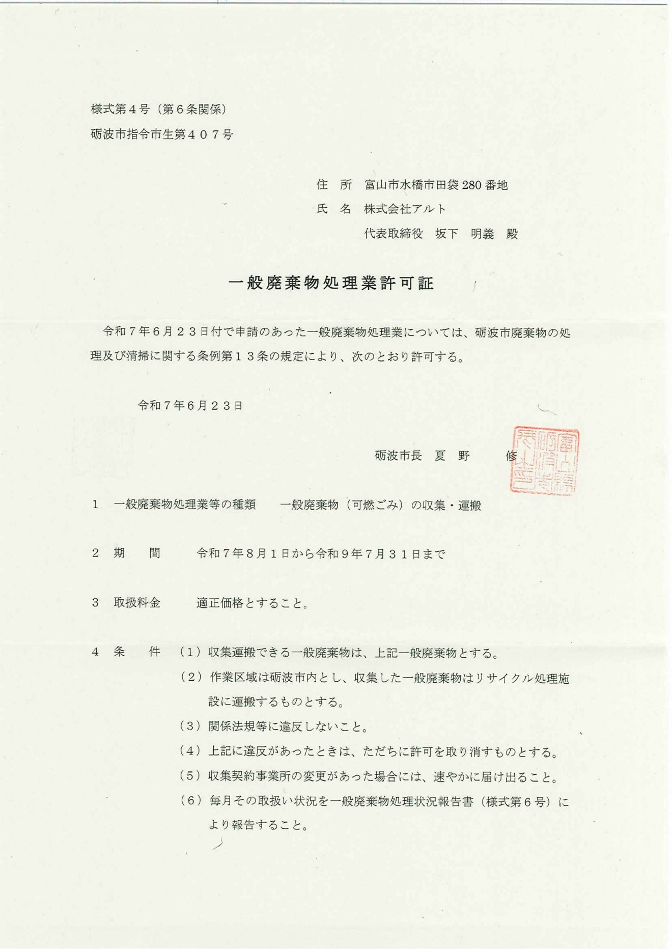 令和9年12月25日産業廃棄物処分業